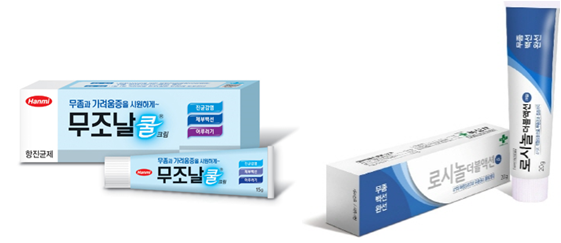 무조날'쿨'크림(무조날크림과는 달라요~)과 로시놀더블액션의 경우, 국소마취제와 염증 및 통증을 가라앉히는 성분이 함유되어 있어 가려운 증상을 동반한 무좀 치료에 좀 더 효과적이에요.