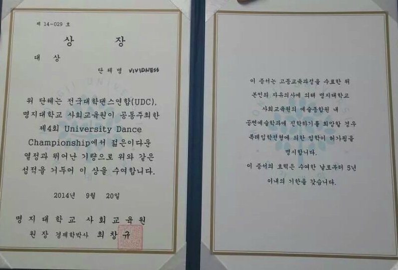 그리고 이 대회에서 대상을 탄 비비드니스 멤버 모두