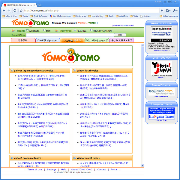 [웹사이트]일본어 한자를 후리가나/알파벳/한글로 변환 - yomoyomo.jp (유틸리티/일본어/한자/후리가나/발음/변환)