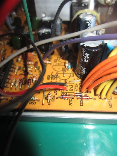 출력의 5V(빨간색선)선과 연결해 줍니다. 시멘트 저항이 없는관계로..ㅎㅎ