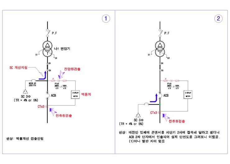 이때에는 진상콘덴서 회로를 차단하여 역률을 조정해 주어야 하는데, 그 방법은 수동과 자동으로 조정하면 되겠습니다.