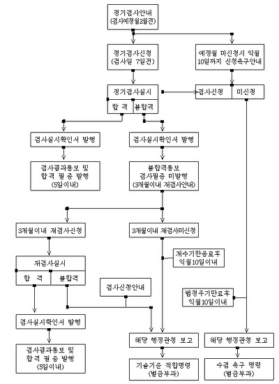 (2) 사후처리 ① 해당관청의 지시에 따라 조치한다. ② 해당관청에서 검사 면제 조치할 경우에는 수수료 및 검사신청서류 일체를 반환한다.