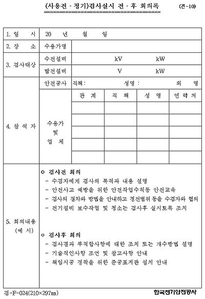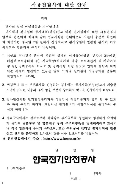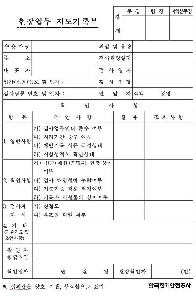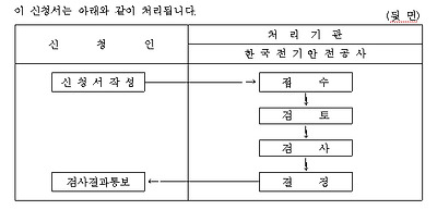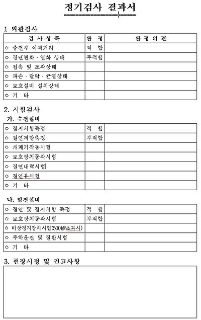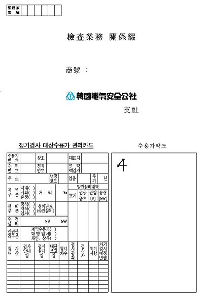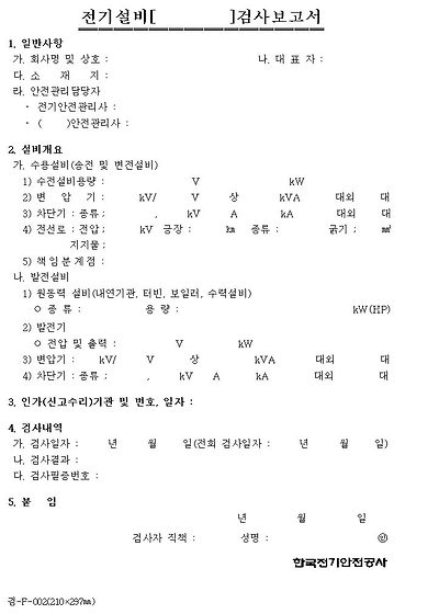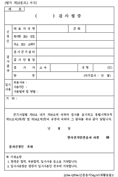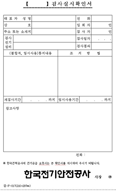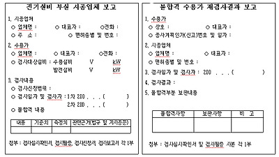 검사필증 사본, 전기설비 검사보고서 및 붙임 서류를 작성하여 사업소장에게 보고한 후 검사보고서는 검사업무 관계철에 수용가별로 따로 철하여 보관하고, 검사업무처리표는 검사접수부서에 송부한다.