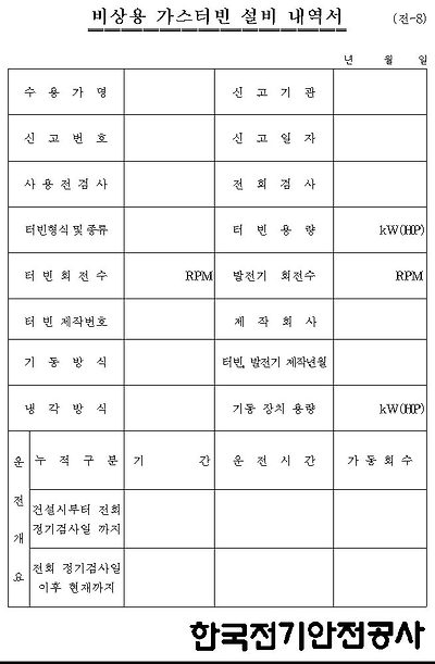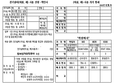 (1) 법 제62조제2항의 규정에 의한 자가용전기설비의 공사계획의 신고 및 변경신고의 수리