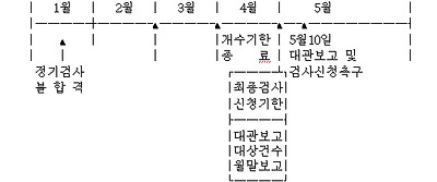 (2) 검사대장의 검사신청 일자란에 변경일자를 기재한다.
