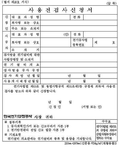 전기설비의 공사계획 인가를 받거나 또는 신고를 하고, 설치 또는 변경공사를 한 자는 산업자원부령이 정하는 바에 따라 산업자원부장관 또는 시·도지사가 실시하는 검사에 합격한 후에 이를 사용하여야 한다.