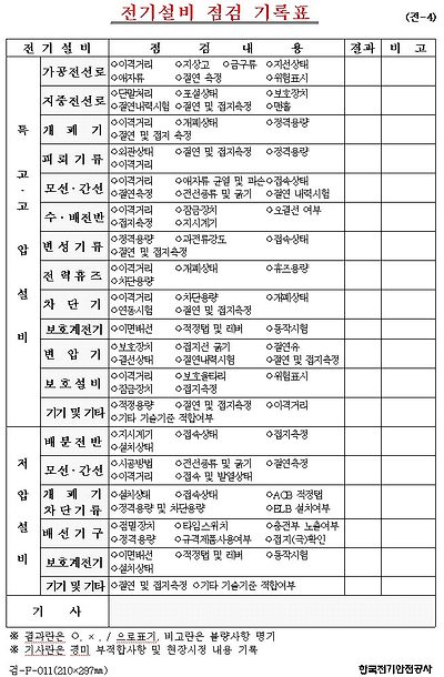 (4) 법 제65조의 규정에 의한 전기설비의 정기검사