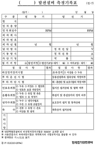 1.2 적용 범위 이 처리방법은 전기사업법 시행규칙(이하 "규칙"이라 한다) 별표7의 공사계획인가(신고)대상인 자가용전기설비의 사용전검사와 규칙 별표10의 정기검사대상 전기설비의 정기검사업무에 적용한다. 단, 상용발전설비(출력 1만kW미만 의 내연력발전설비는 제외)는 전력설비검사처에서 따로 정하여 적용한다.