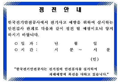 (1) 조치사항 : 검사자는 검사를 실시하지 말고 귀사하여 해당관청에 공문으로 보고하고, 한전에 공문으로 통보한다.