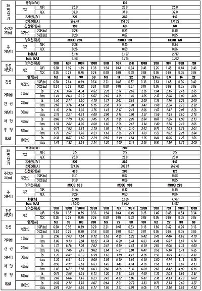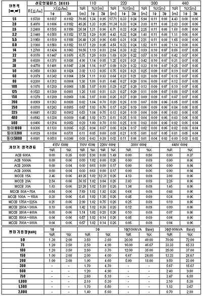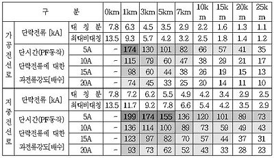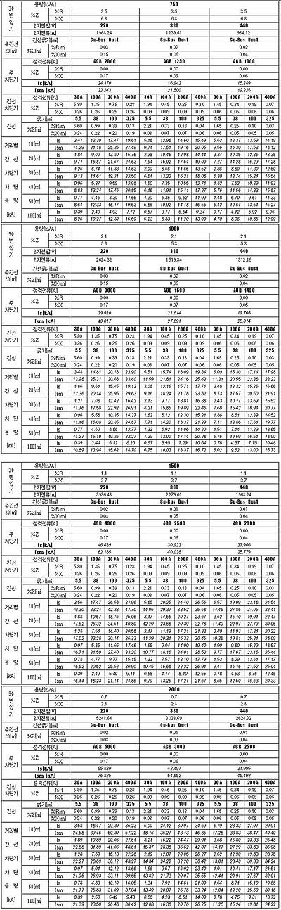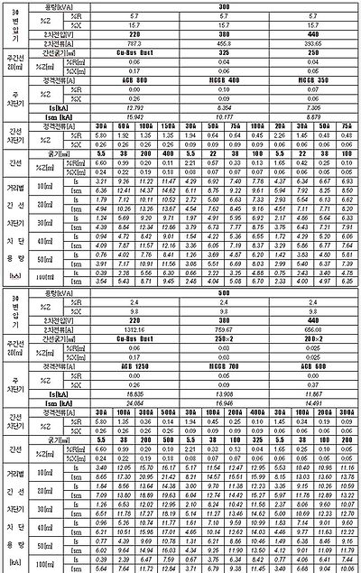 ※ 이 경우 케이블트레이 점유면적은 케이블들의 단면적 합계(11,757㎟)보다 커야하므로 표 5에서 점유면적 12,580㎟내에 속하므로 케이블트레이 내측폭 450㎜의 것을 선정