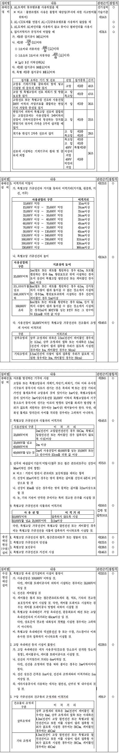 (2) 다음 각목의 위험시설에 설치하는 용량 20킬로와트 이상의 전기설비 ① 총포·도검·화약류 등 단속법에서 규정하는 화약류(장난감용 꽃불을 제외한다)를 제조하는 사업장【총포·도검 화약류등단속법 제2조제③항】 ② 광산보안법에 의한 갑종탄광【광산보안법시행령 제4조제③항】 ③ 도시가스사업법에 의한 도시가스사업장, 액화석유가스의안전및사업관리법에 의한 액화석유가스의 저장·충전 및 판매사업장 또는 고압가스안전관리법에 의한 위험물의 제조·저장장소【도시가스사업법 제2조】,【액화석유가스 의안전및사업관리법 제2조】,【고압가스안전관리법 제3조】 ④ 소방법에 의한 위험물의 제조소 또는 취급소【소방법 제15조 및 동시행령 제14조 내지 제15조】