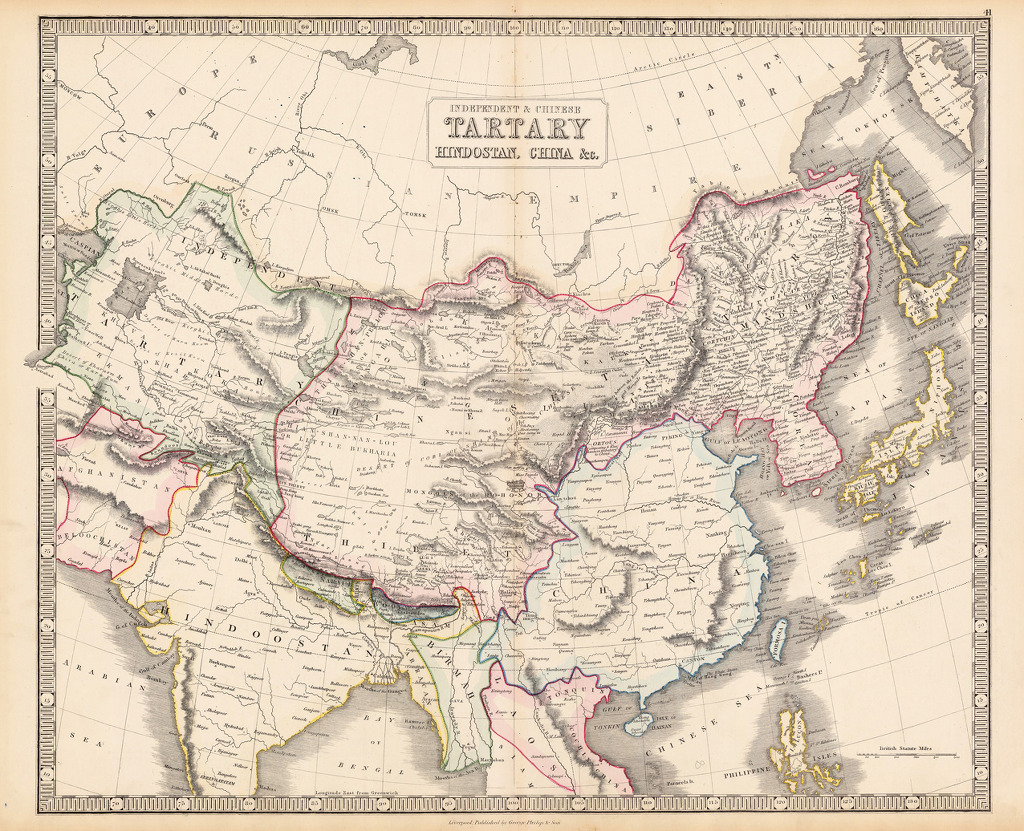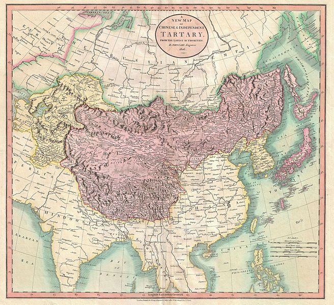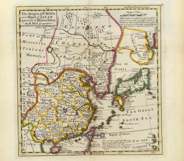 Corea라고는 표기되어 있어요. 국경이 없고 색깔이 같아서 그렇지. 위 지도에도 타타르와 Corea의 국경구분이 안 보이죠? 참고로 1800년대 지도에는 색깔이 구분됩니다. 정조사후 연방에 분열이 일어났는지..