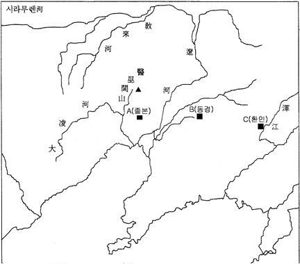 사실 고구려의 첫 도읍인 졸본의 위치를 고증해보면, 요양 지역은 고구려가 성립되는 시기부터 줄곧 고구려의 영역이었다. 즉 『삼국사기』 등에 따르면 고구려의 첫 도읍인 졸본은 현재의 요하 서쪽 의무려산 일대의 대릉하(大陵河) 연안에 위치했던 것으로 추정되고(아래의 [도표 4] 참조), 뒤에 도읍은 다른 곳에 옮겨졌지만 고구려는 그 첫 도읍 졸본을 줄곧 고구려의 영역으로 유지하였는데,주52) 요양([도표 4]의 B 지점)은 졸본의 동쪽에 있었기에 줄곧 고구려의 영역이었다고 말할 수 있는 것이다.