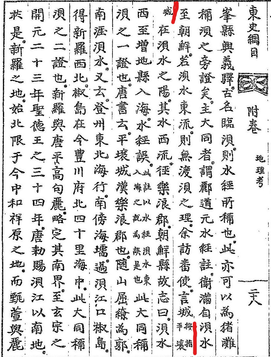 ❿故地理志曰,浿水西至增地縣入海。⓫又漢興,以朝鮮為遠,循遼東故塞至浿水為界。⓬考之今古,於事差謬,蓋經誤證也。
