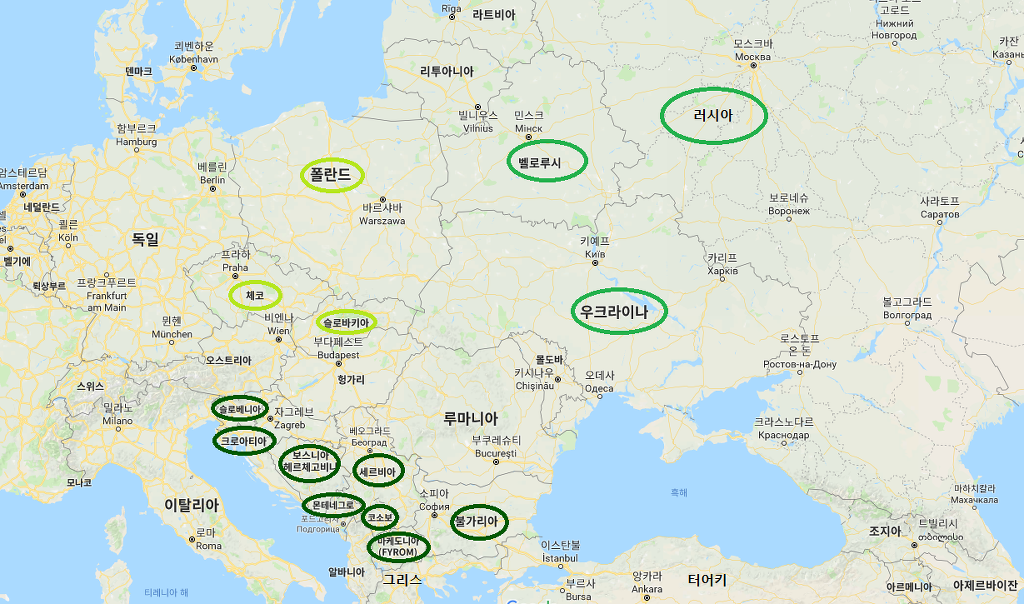 [펌] 슬라브족은 원래는 동유럽 지역에 살고 있었으나, 게르만족이 훈족의 압박으로 서부로 이동한 이후, 슬라브족은 그 공백지로 이동하여 정착한 다음에 현지에 살던 켈트계와 발트계, 그리스인, 로마인을 슬라브화시켰고. 그 이후 민족 분화가 시작되어 현재에 이르고 있다. 서로마 제국이 멸망한 이후 서유럽은 게르만족, 동유럽은 모두 슬라브족의 손에 넘어갔다고 보면 된다.