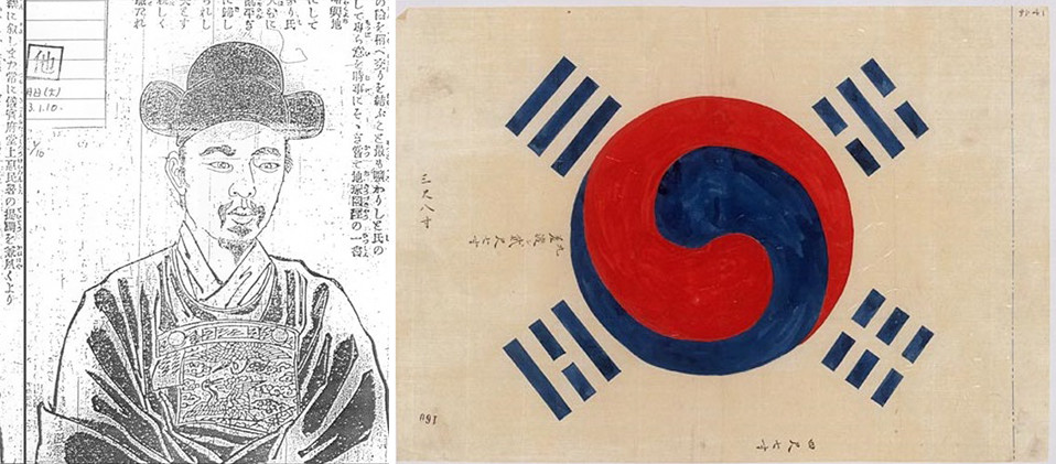 박영효朴泳孝(1861~1939) 조선 말기의 문신, 정치인, 사상가로 개화당이다. 철종哲宗의 부마駙馬로 고종의 고모부이다. 갑신정변을 일으켰고 갑오개혁을 주도했으며, 모두 실패해 도합 20여 년이 넘는 일본 망명 생활을 해야 했다. 1882년 도일渡日 중 배에서 고종의 명으로 제작된 ‘이응준 태극기’ 중 4괘의 좌·우를 바꿔 재도안했고 이것이 태극기의 원형이 됐다. - 위키백과 -