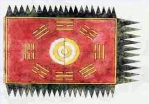 어기였던 태극팔괘도는 이순신 장군 때부터 조선 군영軍營에서 써오던 좌독기를 변형한 것이었습니다. 태극기가 만들어진 이후로는 태극팔괘도 대신 태극기를 어기로 썼습니다.
