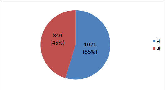 인원수는 남성 1,021명, 여성 840명으로 남성이 181명 많습니다.