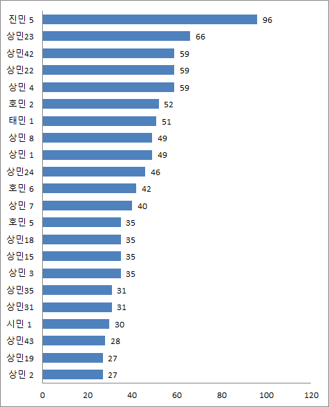 동메달 (59명) : 상민42가, 상민22가, 상민4가 공동 3위