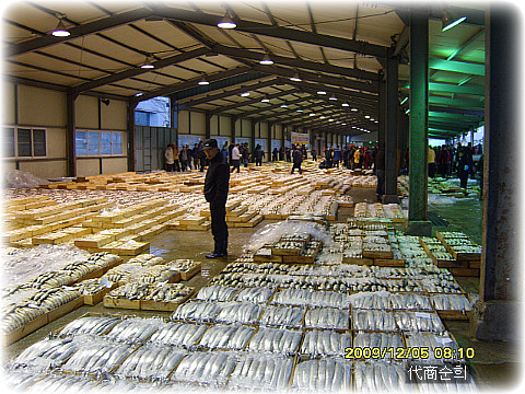 새벽녘 날씨가 찬바람과 함께 비가 와서인지 기온이 뚝 떨어졌습니다. 이불을 박차고 일어나는게 오늘 아침은 더욱 힘이들었지만, 며칠전부터 횟감을 주문하신분이 계셔서 윗 옷을 5겹 껴입고, 씩씩하게 어판장으로 향하였습니다. 바람이 분다는 날씨예보가 있어서인지, 조금 더 있다 들어와야할 안강망 어선들이 서둘러 입항하였나 봅니다. 경매사 뒤를 ;졸졸 따라다니며 시세흐름을 살피다보니, 뒤로 갈 수록 경매가가 떨어지는 걸 느끼면서 구매하지 않으려했던 마음이 사라지고 나도 모르게 갈치를 겁나게 많이 구매하여버렸답니다. 만약 내일까지 바람이 분다면 목포 판장에 위판량이 줄게 될거란 생각에 오늘 또 일을 저질렀습니다.