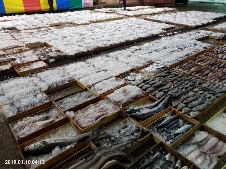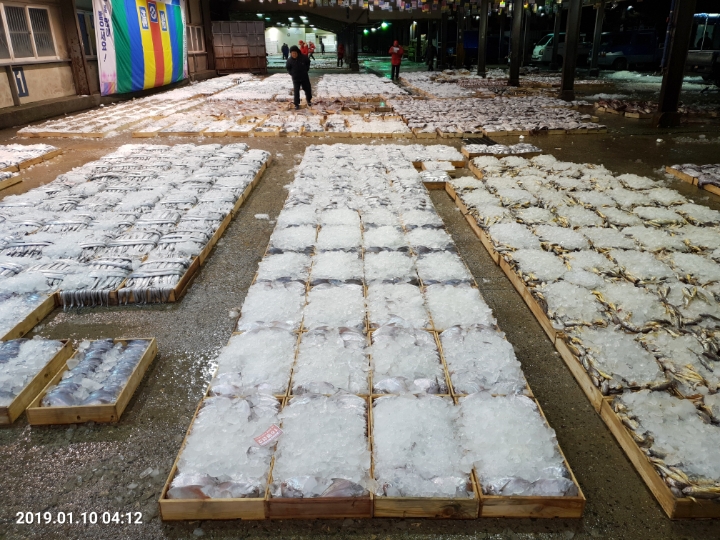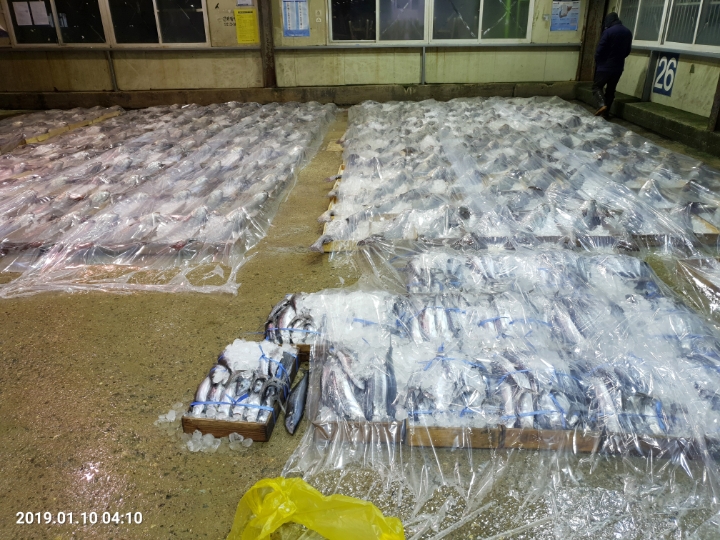 주로 작은 띠갈치가 많았고, 참조기,병어,쥐치,은대구 등의 잡어류가 위판되었습니다.