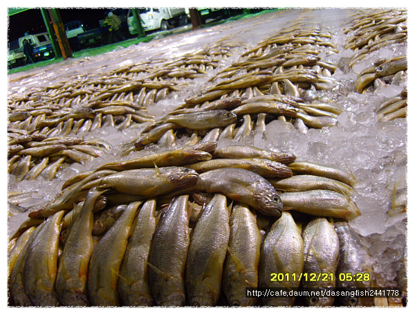 2~3일 만에 목포 판장에 참조기의 위판이 이루어졌습니다. 사람 마음이 참... 그런가 봅니다. 쉼 없이 쏟아져 나오는 참조기들이 지겹게 느껴질때가 있었건만, 이틀동안 보이지 않던 참조기를 보니 오늘은 우째 이렇게 반가운지 ~~ 사람 마음 참... 간사하기 그지 없습니다. 오늘 위판된 참조기들은 1항차 참조기들이라서 대체적으로 신선도가 좋았습니다. 약간씩 알이 들어 있는 것도 섞여 있네요. 겨울이 깊어 갈수록, 알배기 조기가 되어갈수록 참조기의 시세는 오르는 경향이 있습니다. 내일은 4척의 유자망 참조기가 접수 되어 있다고 하고, 내일부터 날씨도 추워진다고 하니, 앞으로의 시세에 대해 낙관적일수만은 없을 것 같습니다. 오늘 판매되는 생선은 유자망 7석, 뺑돌이참조기, 대구입니다. 자연산 횟감 숭어의 판매여부는 아직은 미정입니다.