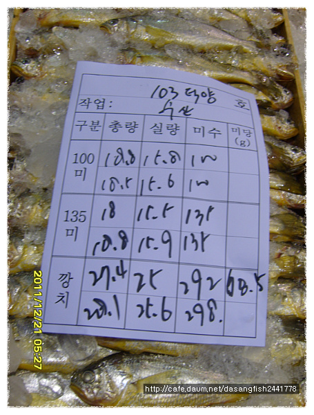 위의 75미 조기 상자를 경매시 엎어 놓은 모습입니다.