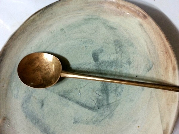 한두달 전 쏘가리님으로부터 택배가 왔습니다. 더덕무침에서 물김치까지 오밀조밀 만드신 온갖 반찬들 속에 자리잡은 숟가락 하나. 놋쇠숟가락을 가지고 싶어하는 제게 보내신 선물입니다. 얼룩 없이 깨끗하게 닦을까하다 저 그림이 좋아서 그냥 씻어서만 사용하고 있습니다.