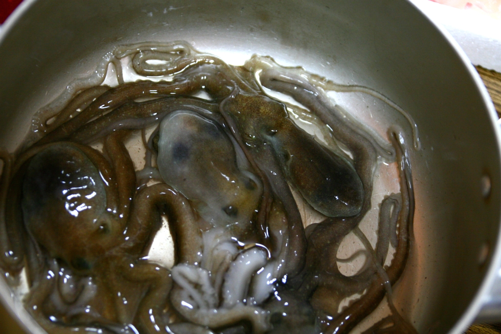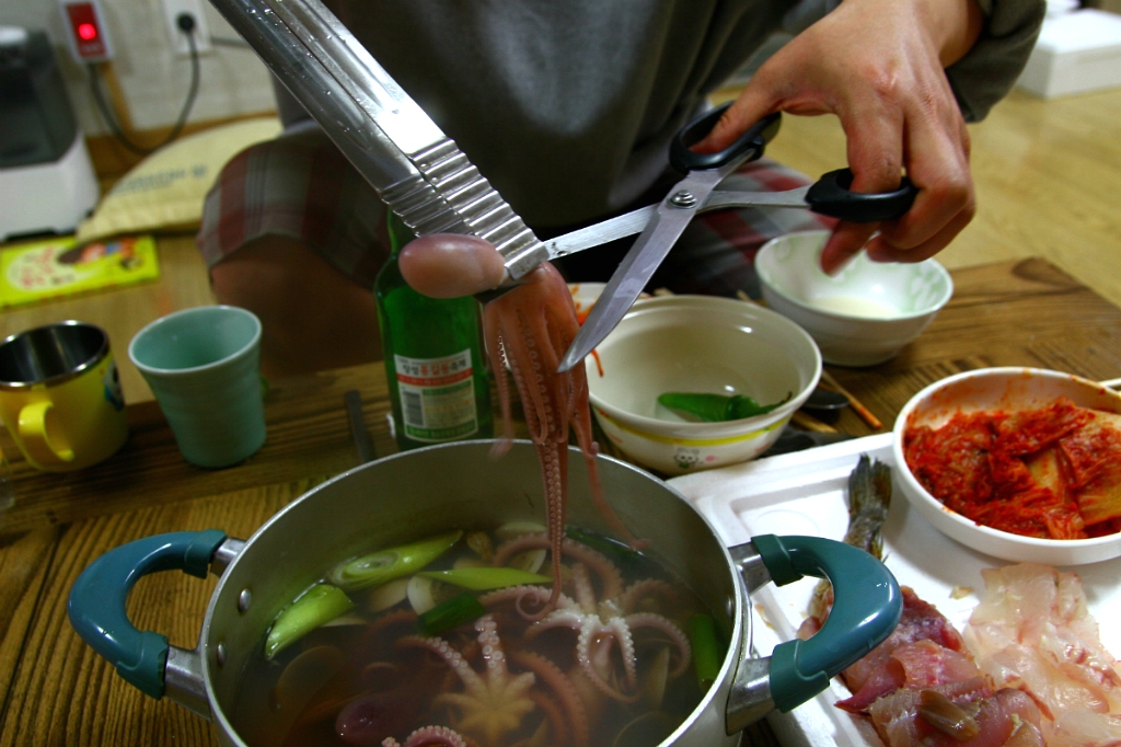 제가 먹고 나서는 조금씩 잘라서 먹도록 했습니다. 기대대로 낙지는 아주 달았습니다.