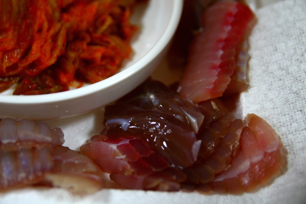 저는 삭힌 국산홍어는 못 먹어 봤습니다. 전에 몇 번 칠레산을 먹었었는데, 도저히 맛을 평가하기가 힘들었습니다.