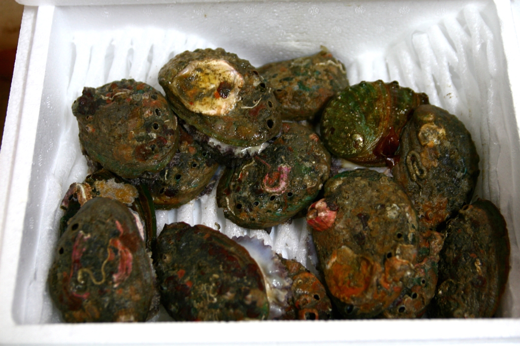 15미 전복. 전복껍데기가 서울에서 보는 놈들하고 아주 틀립니다. 도톰하고요, 딱따~악 합니다.