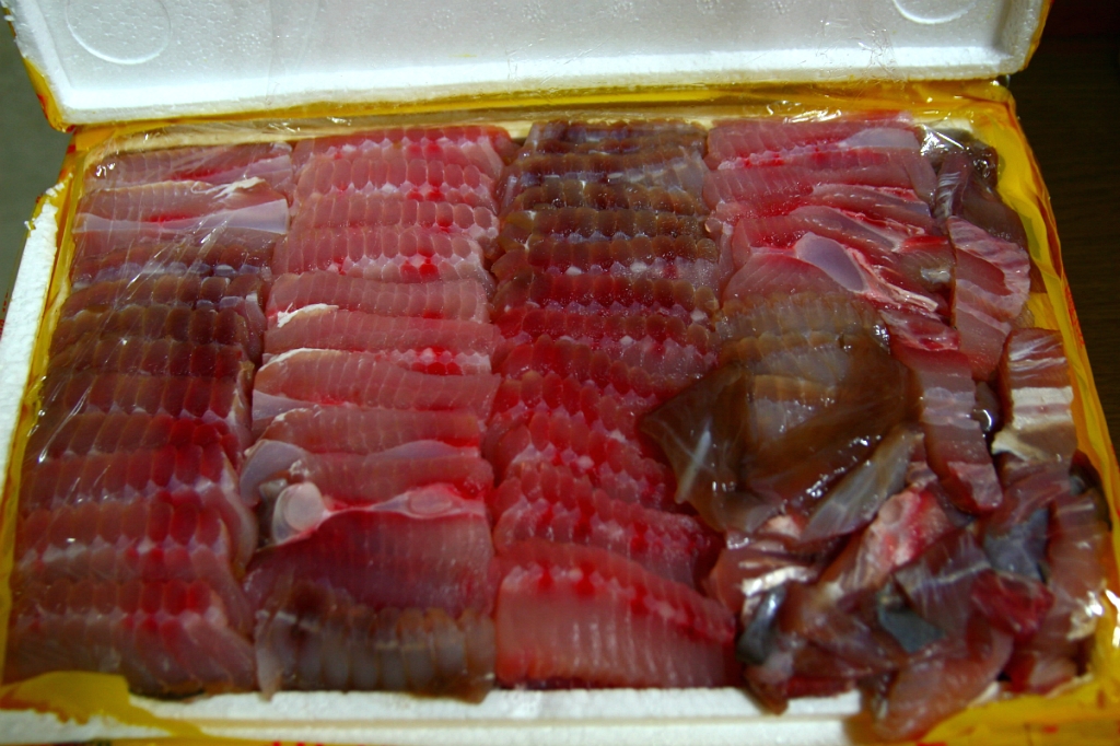 서울에서부터 가장 기대하고 고대하던 횟감입니다. 미리 연락을 해 두었지만, 바다 사정이 있다보니 어찌 될 지 몰랐는데요. 저는 참돔을 원했지만 이 날, 지도에서 들어온 횟감은 광어와 민어 였습니다.