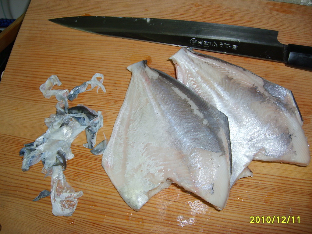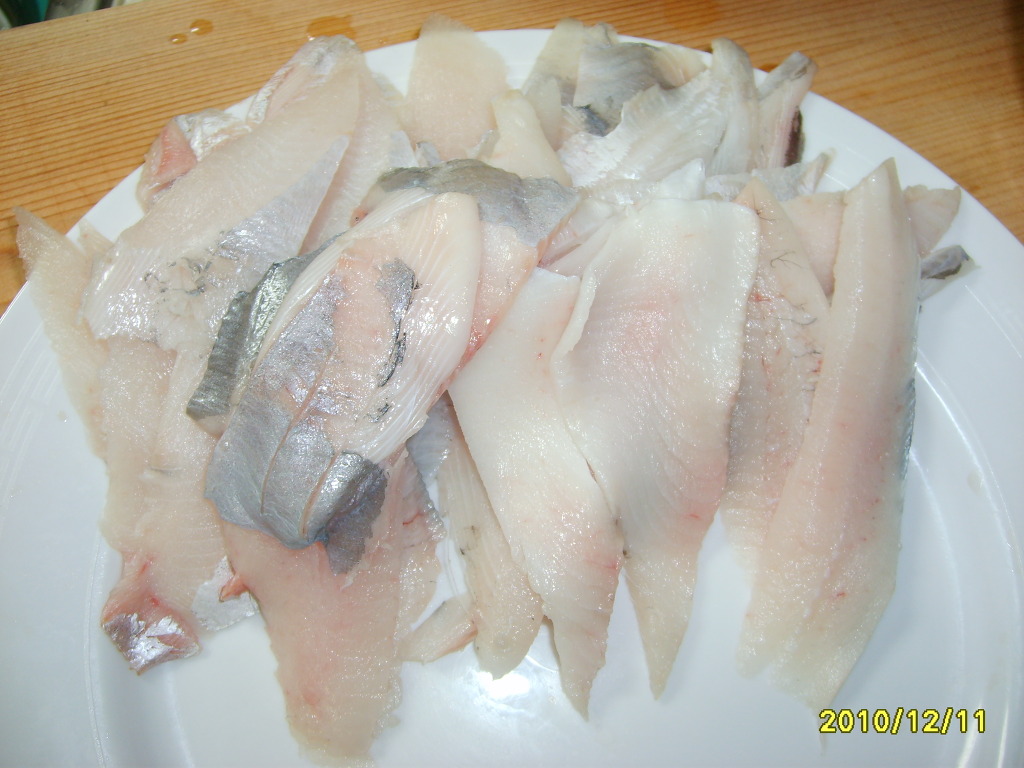 병어 얇은 막같은 껍질을 벗겨 줍니다..(씹는 맛이 껍질이 없으니까 더 고소하고 맛있었어요.)