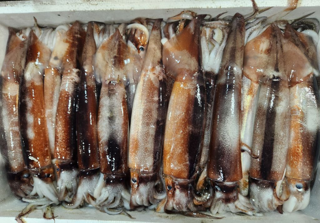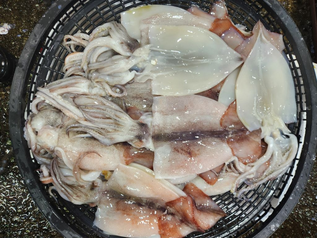 오늘 판매하는 오징어는 원양산이며,