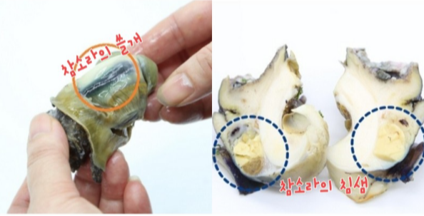 ※ 참소라 쓸개, 침샘에는 독소가 들어 있으니 제거하고 드세요~