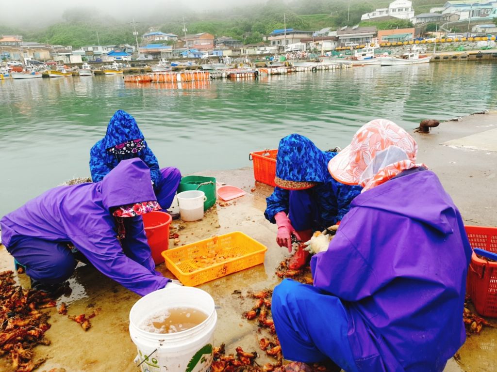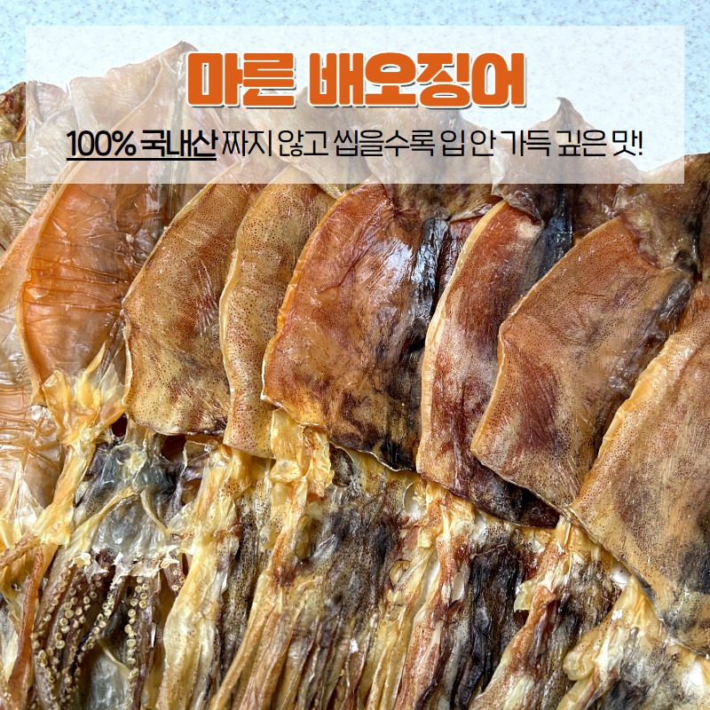 배에서 직접 말린 배오징어는 짜지 않고 씹을수록 깊은 맛입니다.
