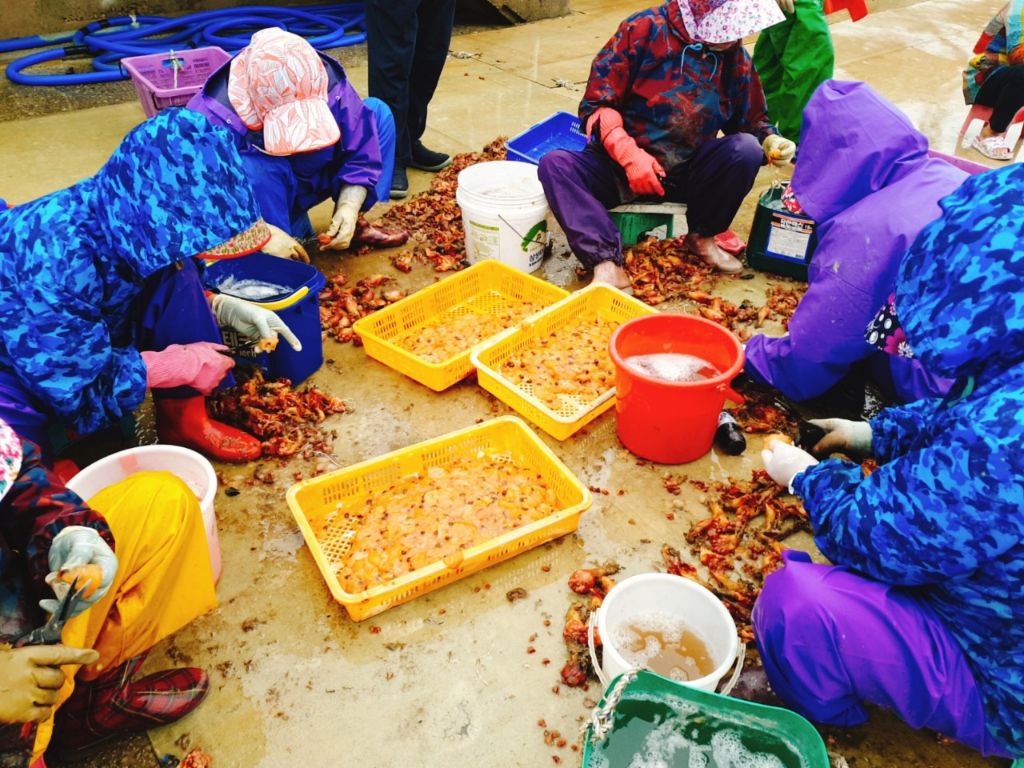 감태를 작업하는 곳에서 깨끗하게 씻어서 작업을 하므로