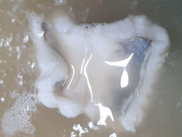 문어 빨판 사이사이 불순물과 남아있는 점액을 제거하고 흐르는 물로 씻어줍니다.