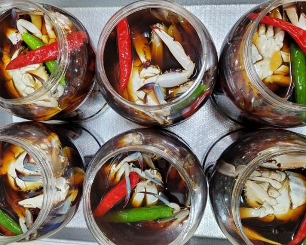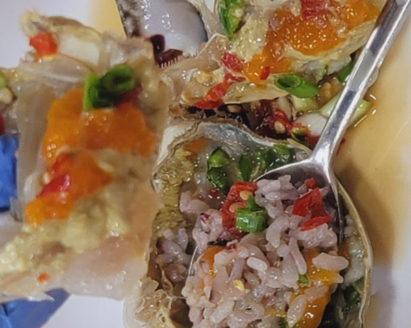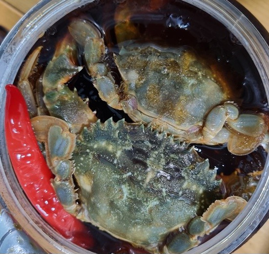 봄철 돌게로 만들어서 알이 들어있는 돌게가 섞여 있습니다.
