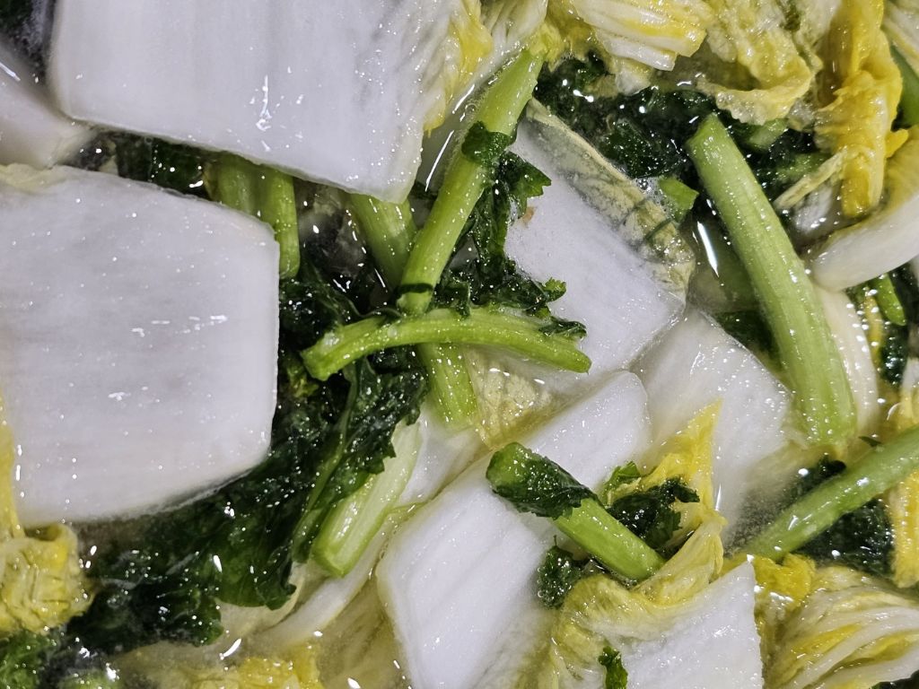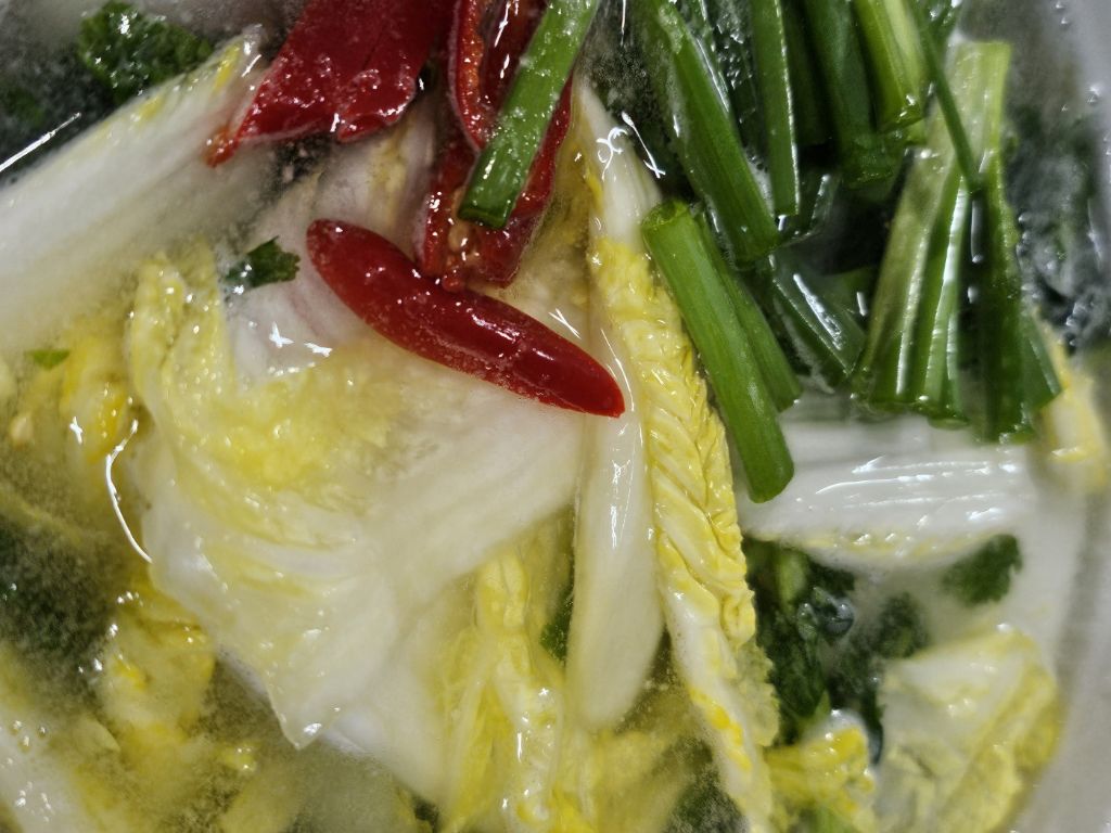 아삭하고 담백 시원하게 드실 수 있는 백김치입니다.