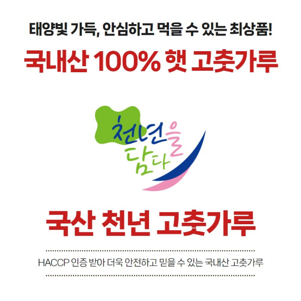 100%로 국산 건고추로 만든 햇고추가루입니다.