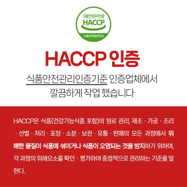 HACCP시설 허가가 있는 시설에서 위생적으로 정성껏 만들었습니다.