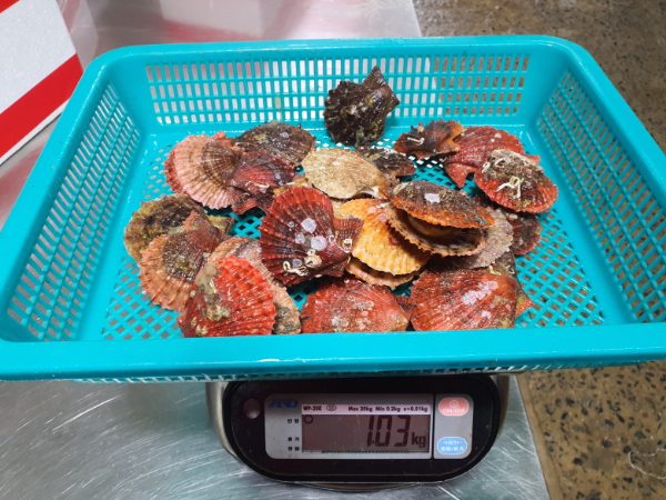 원물 1kg 기준 50~60개 정도이고, 비닐 실링 / 해수 포장하여 보내드립니다.