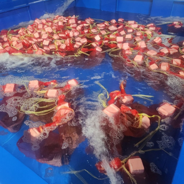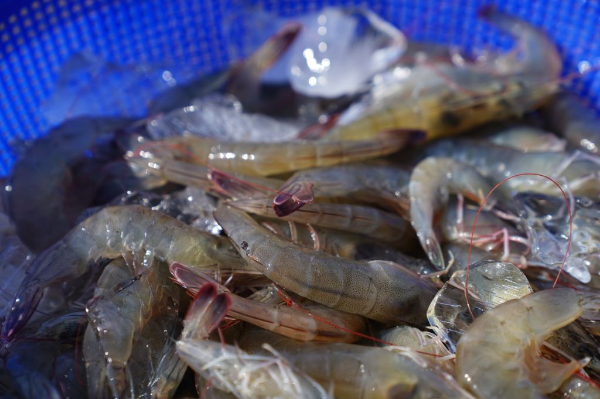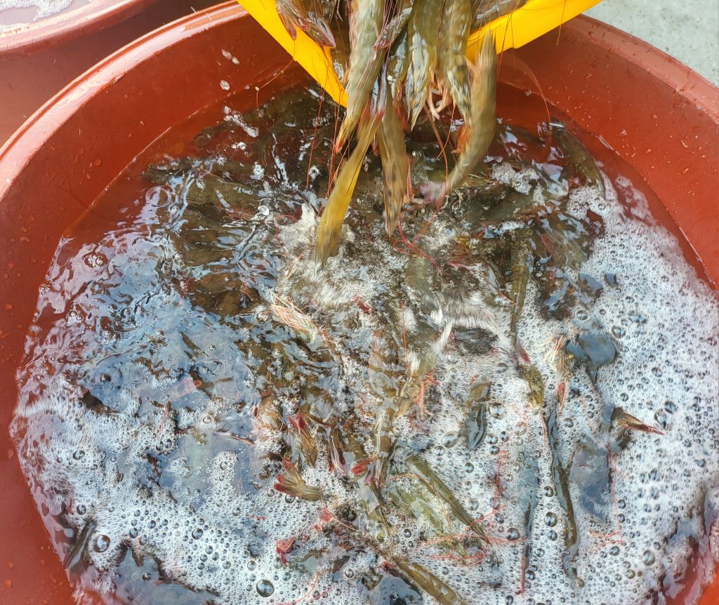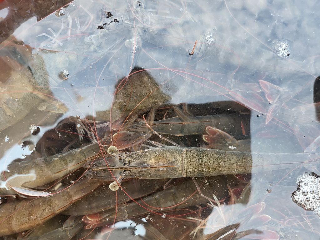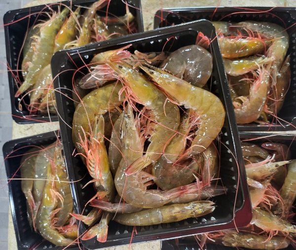 새벽에 갖 잡아온 새우를 작업하였으므로