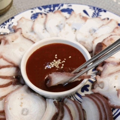 국산 홍어 껍질을 고았으므로 더욱 찰지고 맛있습니다.