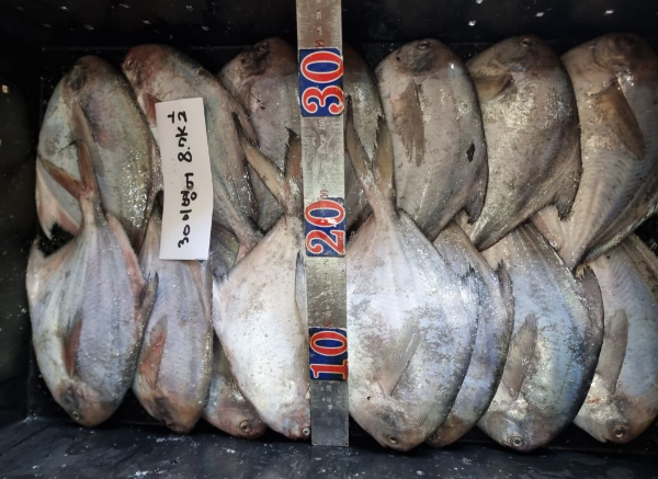 | 참조기 사이즈 구분 참조기는 기계로 크기별 선별 후 상자 작업되어 위판됩니다. 👉 한 상자 무게는 약 15.5kg 내외이며, 마릿수가 적을수록 크기가 크고 가격도 높습니다. ⚖ 1마리당 무게 기준 ▶ 100미 참조기 : 133~186g ▶ 120미 참조기 : 118~125g ▶ 140미 참조기 : 103~116g ▶ 160미 참조기 : 86~105g ▶ 180미 참조기 : 84~96g ▶ 깡치 참조기 : 73~87g ▶ 소깡치 참조기 : 64~76g 👉 즉, “100미 참조기”라 하면 한 상자에 약 100마리 정도 들어있다는 뜻입니다. 👉 크기가 클수록 살이 도톰하고 맛이 좋아 명절 선물이나 굴비로도 많이 사용됩니다. |