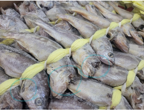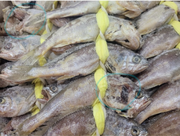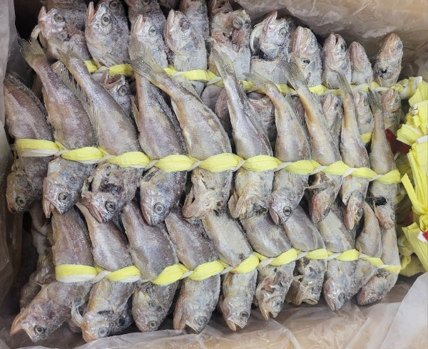 약간의 흠집이 있는 파조기(참조기)를 굴비로 엮었습니다.