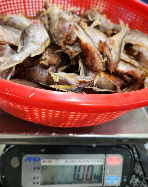 두절된 생물 황석어 2kg을 건조하니 1kg이 되었습니다.