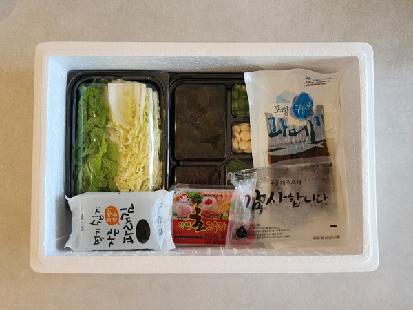 / 초장 150g / 알배추 / 쌈배추 / 쪽파 / 마늘 / 고추 / 돌미역 /꼬시래기