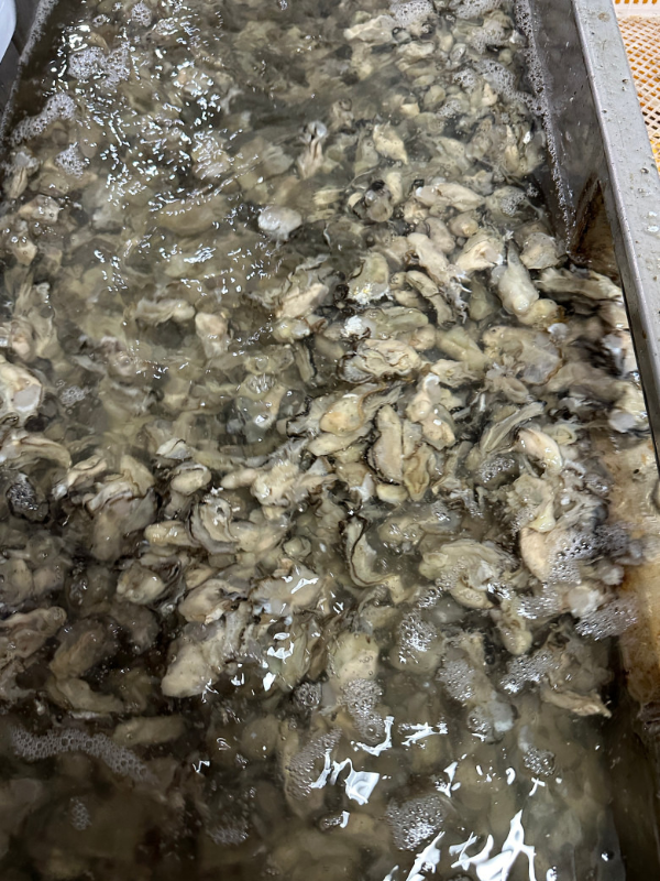 1.깐 굴을 웍이나 냄비에 넣고, 굴이 잠길 정도의 물을 부어줍니다.